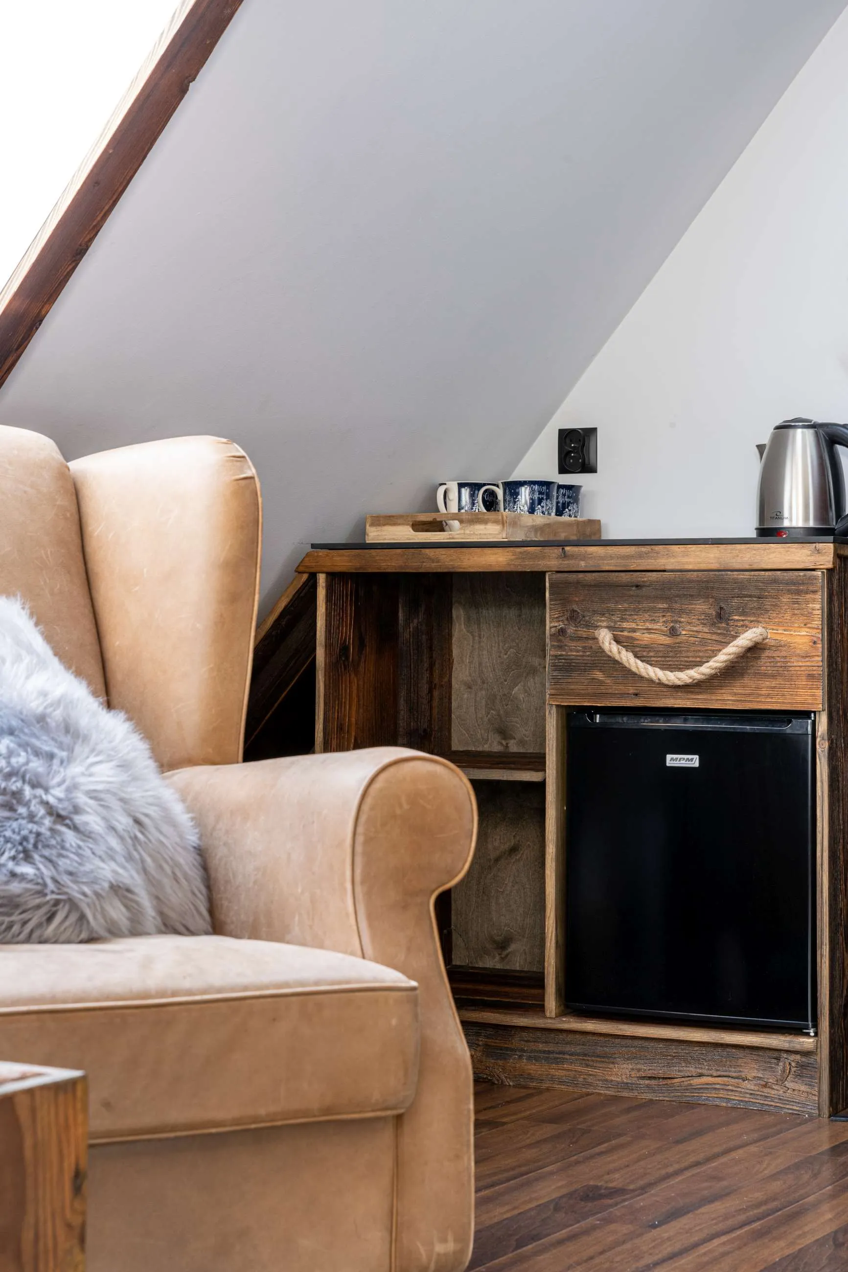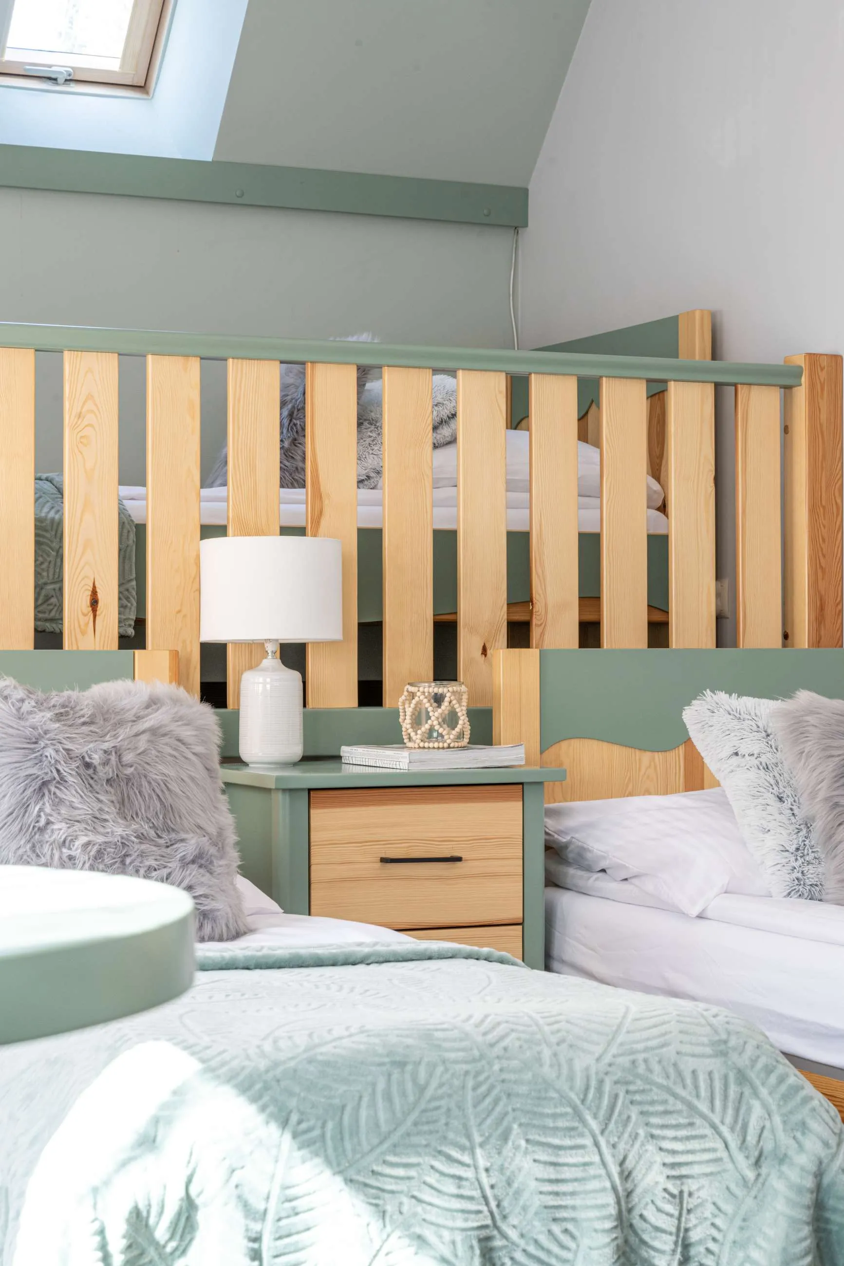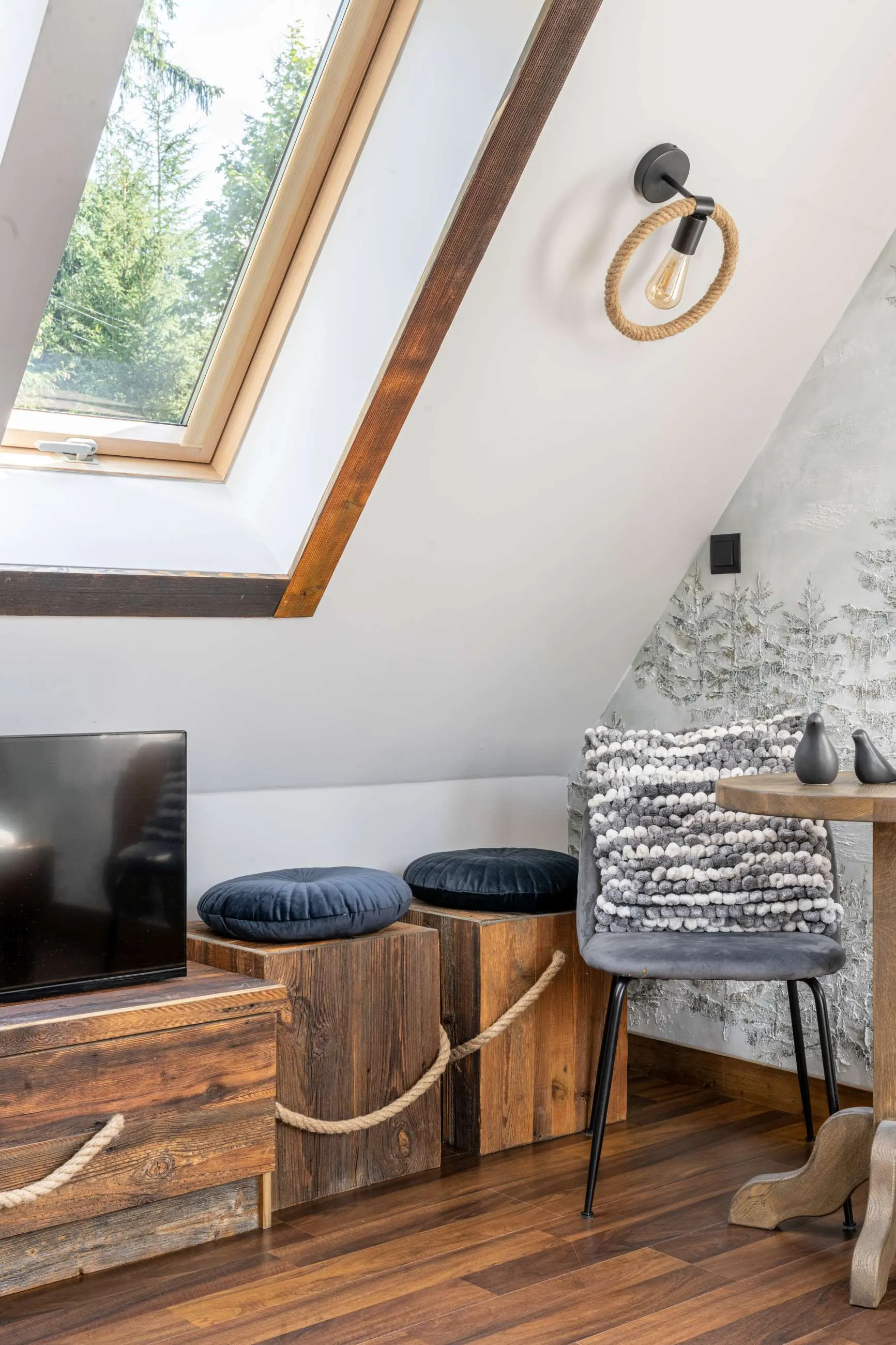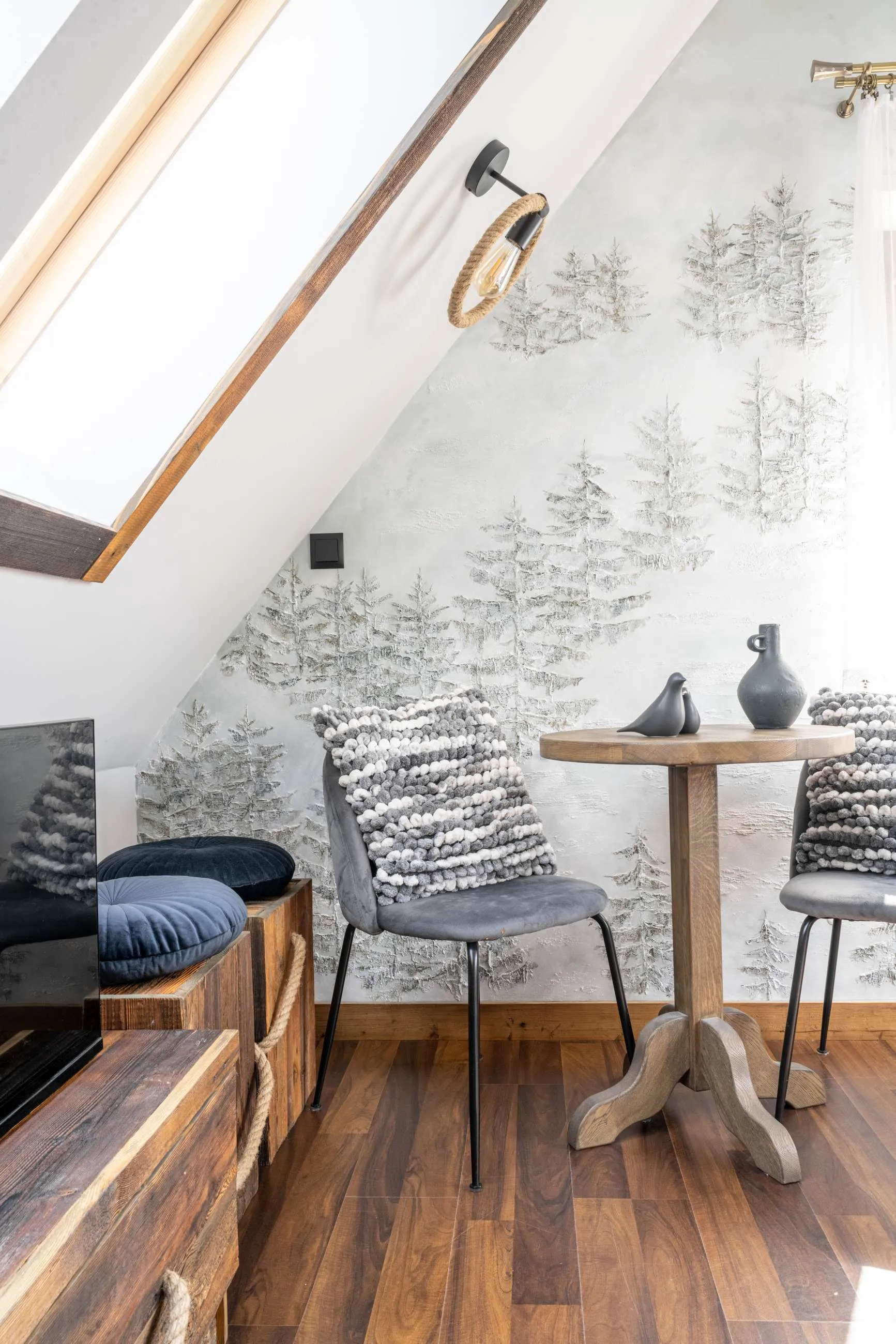 Wnętrza apartamentów zostały zaprojektowane w stylu inspirowanym naturą Tatr. Drewniane meble, naturalne materiały oraz dekoracje z motywami fauny i flory tworzą przytulną atmosferę sprzyjającą wypoczynkowi.